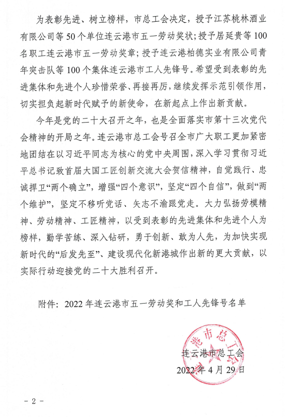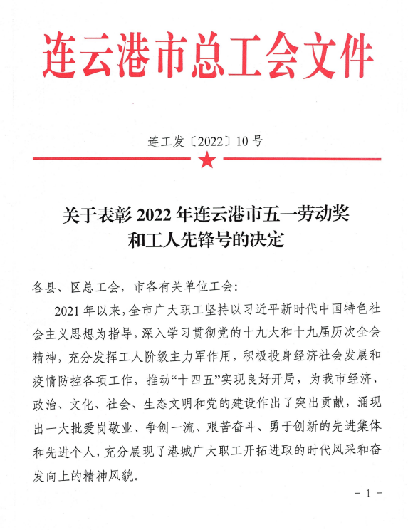近日,石梁河生態(tài)修復(fù)一期工程建設(shè)處被連云港市總工會(huì)授予“2022年度連云港市工人先鋒號(hào)”榮譽(yù)稱號(hào)。