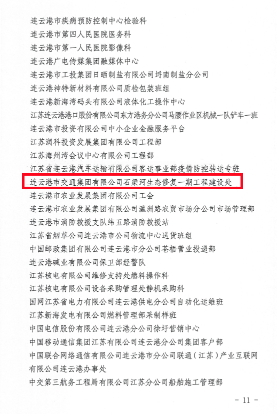 石梁河生態(tài)修復(fù)一期工程建設(shè)處獲連云港市“工人先鋒號(hào)”榮譽(yù)稱號(hào)